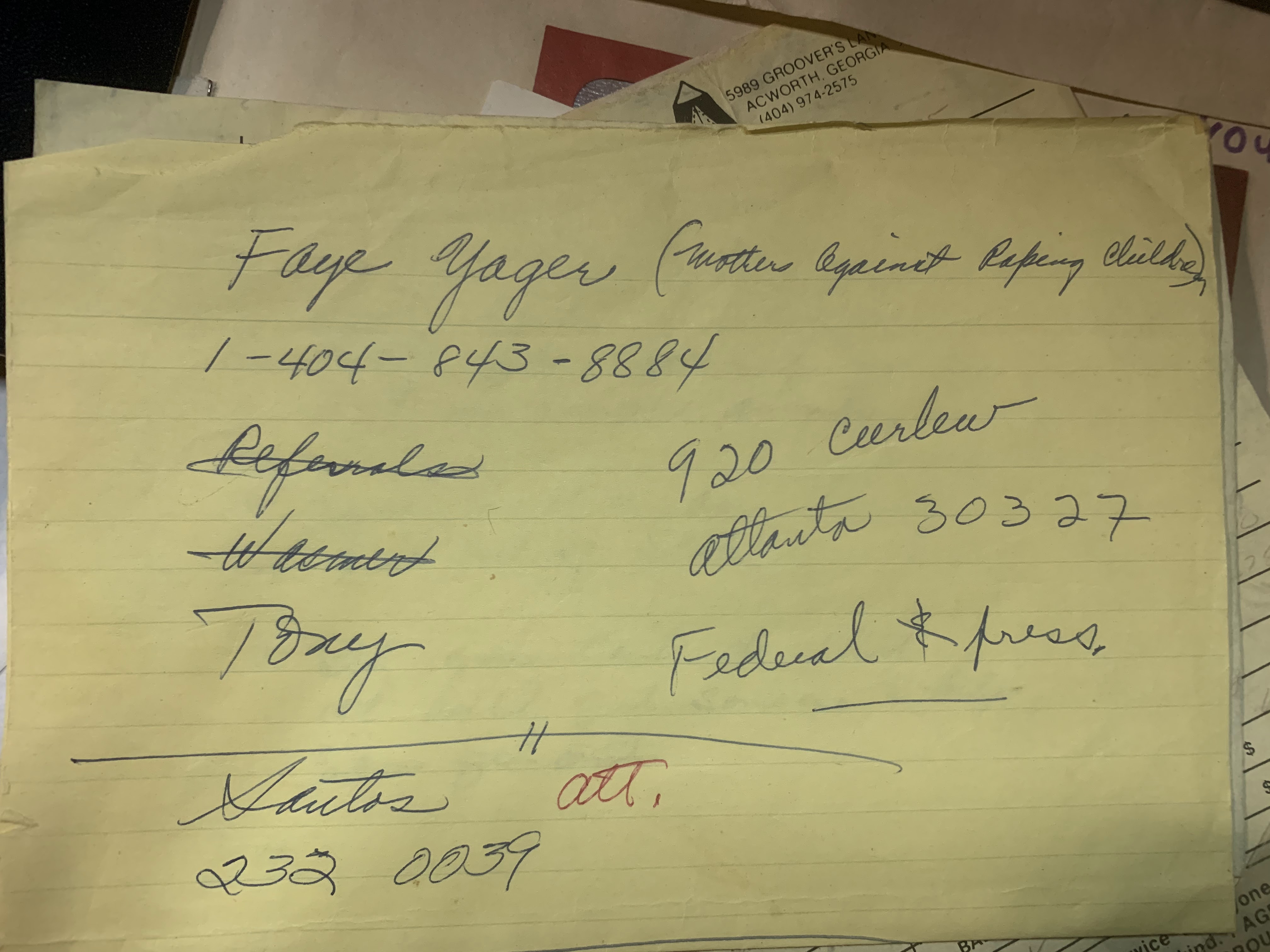 Realizing the situation that they were in, and fully entrenched in paranoia, my grandparents reached out to a woman called Faye Yager, who was pretty famous in the late eighties and early nineties for helping people kidnap children.